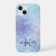 Coque iPhone 15 Monogramme Icicles Snowflakes Bleu pourpre tendanc