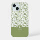 Coque iPhone 15 Moss Green Damask Patch Monogramme