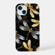 Coque iPhone 15 Motif sans couture avec libellules d'or