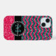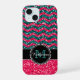 Boîtier de téléphone motif chevron en parties scintillant noire et rose. Personnalisé avec votre nom et monogramme. Conception par Caroline Leskiw