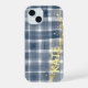 Coque iPhone 15 PERSONLIZED Blue Plaid Gold Aesthetic iPhone Case