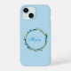 Coque iPhone 15 Pretty Blue Floral Wreath with Monogram