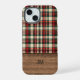 Coque iPhone 15 Tartan Plaid Phone Case with Wood Monogram