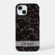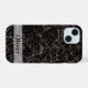 Élégant étui IPhone personnalisé avec texture de marbre / pierre noire et nom personnalisé.
