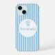 Coque iPhone 15 Whimsical Blue White Stripe Preppy Monogram