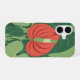 Illustration rétro d'un anthurium stylisé dans une palette rouge et verte.