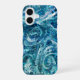Coque iPhone 16 Bleu Blanc Turquoise Mer vague Splash Abstraction
