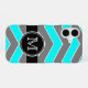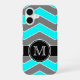 Coque iPhone 16 Bleu cyan, Gris, Chevron noir, Monogramme