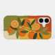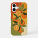 Illustration rétro mettant en valeur des oranges stylisées et leurs feuilles dans une palette naturelle et douce.