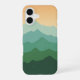 Un design de montagne rétro en couches avec des couleurs plates et atténuées et des silhouettes simples.
