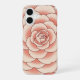 Illustration rétro d'un camélia aux pétales arrondis dans une palette rose-crème douce.
