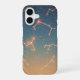 Un graphique de style vintage présentant un ciel nocturne calme peuplé d'étoiles et de constellations simplifiées et brillantes, dans une palette apaisante.
