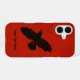 Une simple silhouette noire d'un Corbeau (Corvus corax) sur une image arrière - plan rouge, à l'aspect cuir. L'image du corbeau a reçu un léger effet "rugueux" ou "usé". Customisez en ajoutant votre propre texte.