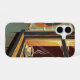 A warm-toned illustration of a cafe's cozy atmosphere, depicted as seen through a vintage window pane.