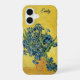 A customizable phone case featuring Irises (1890) by Vincent van Gogh, celebrated for its vibrant blue flowers set against a warm yellow background. The design captures Van Gogh’s bold color contrasts and expressive brushwork.