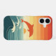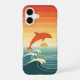 Dauphin minimaliste sautant par-dessus les vagues dans un style vintage apaisant.