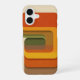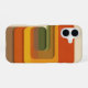 Illustration vintage présentant une composition abstraite de formes rectangulaires incurvées superposées, rendues dans une palette de couleurs terreuses douces et atténuées.