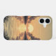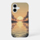 A warm retro illustration showing a peaceful river reflecting glowing sunset light, crafted with vintage tones and a nostalgic grainy texture.