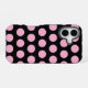 Coque iPhone 16 Gros Pois roses sur noir