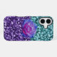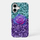 This phone case is created with a glitter design look with a added vibrant rose.