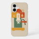 Illustration minimaliste rétro d'une machine à espresso stylisée dans une palette chaude.