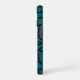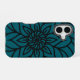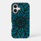 This phone case features a bold, intricate floral mandala design in deep teal and black. The symmetrical pattern radiates from the center, showcasing layered petals and flowing lines for a modern yet elegant look. Perfect for adding a touch of artistic flair to your everyday style.