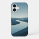 Une douce illustration de rivière rétro présentant des formes lisses et des couleurs sourdes.