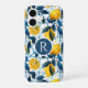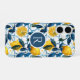 Coque iPhone 16 Monogram Blue Mediterranean Style Lemon Pattern