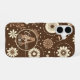 Un charmant motif floral avec un éventail de fleurs complexes et de feuilles dans des tons chauds et terreux de brun et de crème.