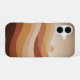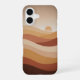Illustration rétro représentant des dunes abstraites sous un soleil ovale dans une palette sablonneuse douce.