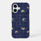 Coque iPhone 16 Navy Blue Moon and Gold Grid Design