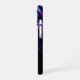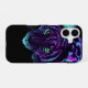 A unique phone case featuring a powerful digital tiger design with vibrant neon purple and blue colors, and striking glowing green eyes. Perfect for a modern, edgy look inspired by space and the cosmos.