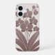 Illustration rétro d'orchidées étroitement groupées et stylisées dans une palette mauve douce.