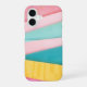 Ce design est une oeuvre pop-art lumineuse remplie de plaisir et d'une ambiance festive. Des bandes de couleurs pastel voyantes se chevauchent en diagonale, créant une profondeur multi-couches qui rappelle les rubans ou le papier d'emballage. La combinaison de teintes joyeuses - turquoise, rose bébé, rose chaud et jaune citron - apporte énergie et joie au spectateur.