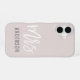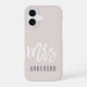 Après le mariage, montrez votre nouveau nom de famille avec ce coque élégant et élégant — parfait pour la lune de miel! Caractéristiques personnalisées de la conception de la mariée "Mme. [lastname]" dans la typographie moderne blanche et grise sur un arrière - plan pastel rose roux et poussiéreux. Utilisez le champ fourni pour personnaliser avec votre nouveau nom de famille.
