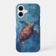 This personalized ocean phone case features a brown-patterned sea turtle surrounded by the blue ocean, in a watercolor style.