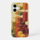 Abstract blocks reminiscent of a retro arcade pattern in warm tones.