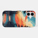 A peaceful retro landscape showing a reflective lake framed by tall pines, created with vintage colors and soft textured details.
