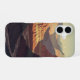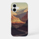 A warm retro canyon scene featuring layered rock formations and soft atmospheric depth in earthy tones.