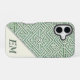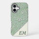 Coque iphone moderne sauge vert et crème géométrique labyrinthe à motif avec monogramme. Personnalisez votre coque iphone avec ce design unique et chic. Idéal comme cadeau personnalisé.