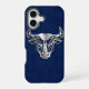 Protect your iPhone 16 case with this bold, luxury design featuring a powerful silver chrome geometric bull head. The 3D metallic mask aesthetic creates a unique, futuristic, and high-strength look, perfectly contrasted against a premium cobalt blue python snakeskin background. This unique fusion of wild energy and modern industrial art is designed for those who command respect and want a premium accessory. High-quality print with a sleek, metallic finish.