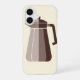 Retro illustration of a stylized coffee pot in a brown and cream palette.