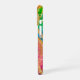 Le boîtier de téléphone portable a un bloc solide de blanc d'un côté et un motif tourbillon coloré de l'autre moitié. La parties scintillant aux faux aux accents dorés apporte une touche festive. Ajoutez une initiale, un nom ou un autre texte en orientation verticale en lettres noires pour un cadeau plus significatif.