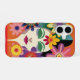 A vibrant, animated scene unfolds as the camera performs a gentle zoom-in on a stylized face adorned with colorful flowers. The flowers sway softly, creating a rhythmic motion that complements the serene expression of the face. The background radiates warm orange hues, enhancing the cheerful atmosphere. As the camera continues to draw closer, the intricate details of the floral patterns become more pronounced, showcasing a playful and artistic aesthetic. The lighting is bright and inviting, evoking a sense of joy and creativity.