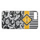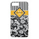 Ce coque personnalisé en noir et blanc Coque-Mate personnalisé iPhone 7 a un damas floral et rayé arrière - plan motif avec une bande jaune et blanc moutarde dorée et diamant pour ajouter votre nom, initiales, monogramme ou autre texte à. Ce nouveau coque moderne et branché fait une déclaration chic pour le jeune fashionista branché ! Si vous avez besoin d'aide, envoyez un courriel à niteowlstudio@gmail.com.