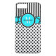 Ce coque personnalisé en noir et blanc Coque-Mate personnalisé iPhone 7 dispose d'un pois de polka amusant, motif arrière - plan rayé avec une bande d'impression bleu et noir et girafe et cercle pour ajouter votre nom, initiales, monogramme ou autre texte à. Ce nouveau coque moderne et branché fait une déclaration chic pour le jeune fashionista branché ! Si vous avez besoin d'aide, envoyez un courriel à niteowlstudio@gmail.com.