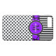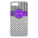 Ce coque personnalisé en noir et blanc Coque-Mate personnalisé iPhone 7 dispose d'un pois de polka amusant, motif arrière - plan rayé avec une bande d'impression violet et noir girafe et cercle pour ajouter votre nom, initiales, monogramme ou autre texte à. Ce nouveau coque moderne et branché fait une déclaration chic pour le jeune fashionista branché ! Si vous avez besoin d'aide, envoyez un courriel à niteowlstudio@gmail.com.