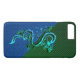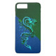Imaginaire coloré thème iPhone 7 Plus coque fait dans un vert sur vert dégradé motif, sur la partie supérieure du coque et un dégradé bleu motif, sur la partie inférieure. Graphisme d'un dragon de style chinois bleu et vert, orne le milieu du coque. Customisez d'ajouter le texte que vous souhaitez à ce coque unique.