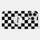 à damiers carré noir et blanc rétro Monogram coque iphone. Personnalisez avec votre initiale et votre nom personnalisés. Cool retro à damiers géométrique carré motif design. Vérificateur moderne vintage carrelage noir et blanc.