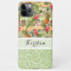 Motif contemporain corail rouge, rose, orange, jaune et vert tropical fleuri, ananas et rayures. Avec place pour customiser ou personnaliser avec un nom, monogramme ou initiales de votre choix. Belle couverture moderne et cool pour le brancheur tendance et amateur d'art branché, amoureux de motifs artistiques qui veut protéger leur téléphone de la poussière et de la saleté, de l'usure et de la déchirure. Cette conception est disponible Apple iPhone 6, 7, 8, 10 ou X, XR, XS, 11, 12, 13 Mini, 14, 15 Plus, et Pro Max coques de téléphone cellulaire. Montrez votre style, regardez à la mode, et sentez élégant avec un design unique sur un accessoire mobile de votre choix.
